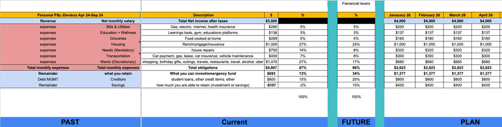 The Budgeting journey:• Rebalance your relationship between time and money.• Capture a full snapshot of your expenses.• Build a personalized Profit & Loss statement.• Benchmark your P&L against a moderate savings plan.• You take full control of your financial levers to optimize your savings.
